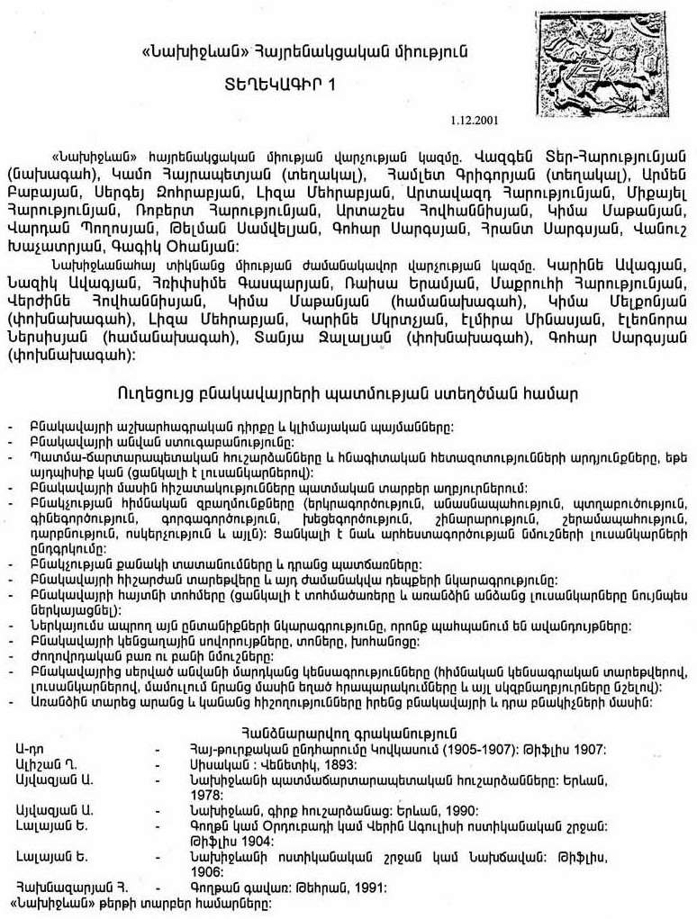 "Вестник Землячества Нахичеванских Армян" N 1. |