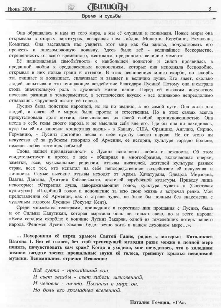 Газета "Тбилисцы" N 6 2008 г. |
